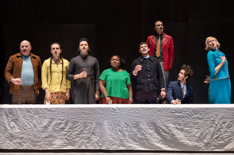 THEATRE - LE SUICIDÉ, VAUDEVILLE SAUVIÉTIQUE de Nicolaï Erdman, mise en scene par Jean Bellorini, au Theatre National Populaire, decembre 2022. Avec François Deblock, Mathieu Delmonté, Clément Durand, Anke Engelsmann, Gérôme Ferchaud, Julien Gaspar-Oliveri, Jacques Hadjaje, Clara Mayer, Liza Alegria Ndikita, Marc Plas, Antoine Raffalli, Matthieu Tune, Damien Zanoly et Tatiana Frolova.