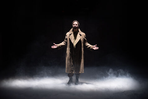 THEATRE - L?ESPE?CE HUMAINE OU L'INIMAGINABLE, d?apre?s La Douleur de Marguerite Duras, Autour d?un effort de me?moire de Dionys Mascolo et L?Enfer de Treblinka de Vassili Grossman, mise en sce?ne et sce?nographie de Mathieu Coblentz au TNP, theatre national populaire de Villeurbanne-Lyon au Petit the?a?tre, salle Jean-Bouise, en janvier 2023 avec Mathieu Alexandre, Florent Chapellie?re, Vianney Ledieu, Camille Voitellier et Jo Zeugma.