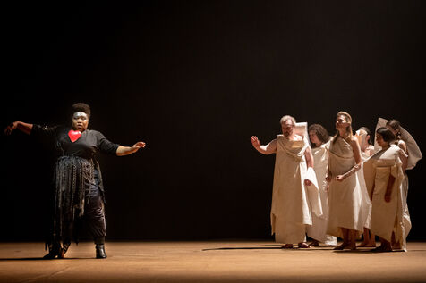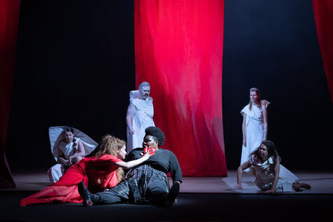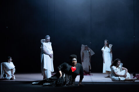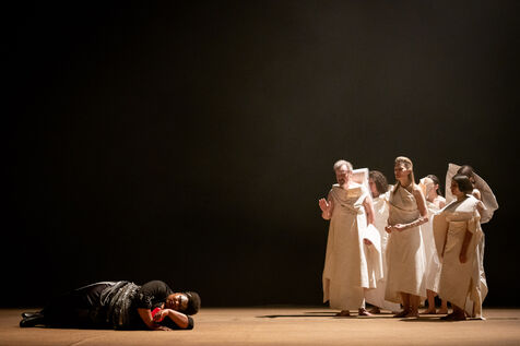 TEATER - MEDEE after Euripides, adapted and directed by Lisaboa Houbrechts, Salle Richelieu of the Comédie Française, May 10, 2023. With Serge Bagdassarian, Bakary Sangaré, Suliane Brahim, Didier Sandre, Anna Cervinka, Élissa Alloula, Marina Hands, Séphora Pondi, Léa Lopez, Sanda Bourenane, Yasmine Haller and Ipek Kinay.