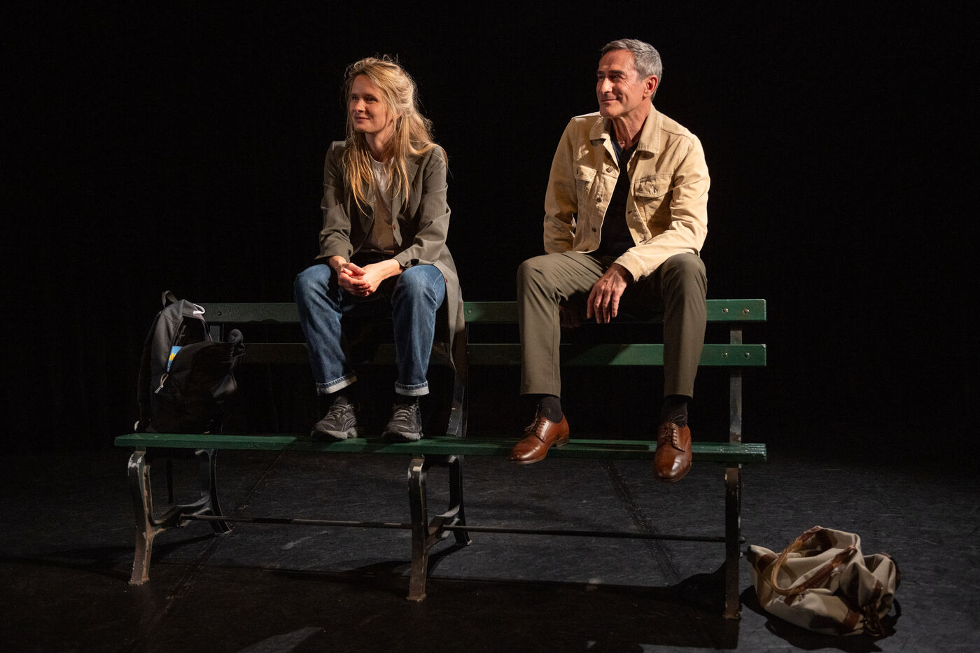 THEATRE - PLACE DE LA REPUBLIQUE by Clement Hervieu Leger, Theatre du Lucernaire, May 2024. With Juliette Leger and Daniel San Pedro. La compagnie des petits champs.