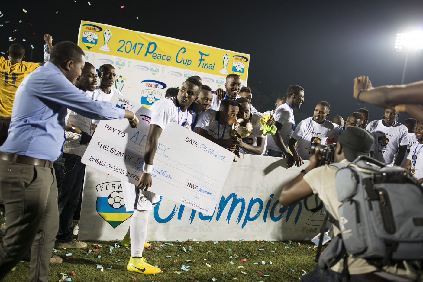 Created in 1995 just after the tutsi genocide, the football peace cup is a symbol of national cohesion.Besides the final is up during the celebrating day, the 4th of July. As the country, the game is full of paradox. Teams's names, priority seats for disabled people, plenty of security forces...Everythings is remembering the genocide and the stict rules for a successful living together.