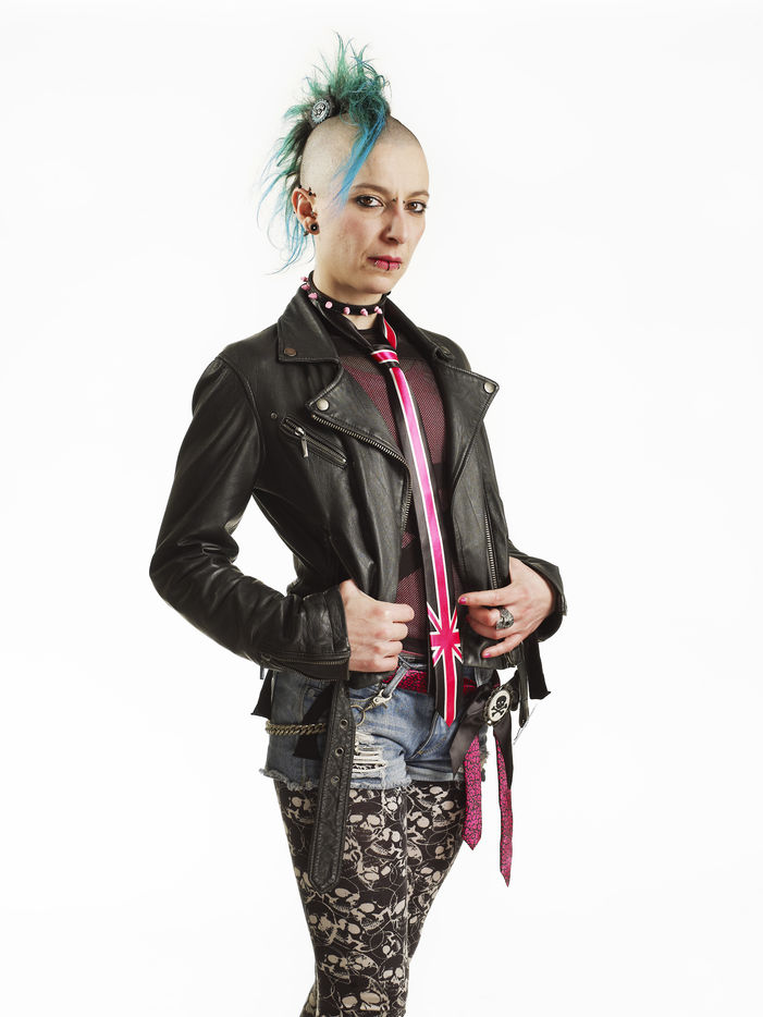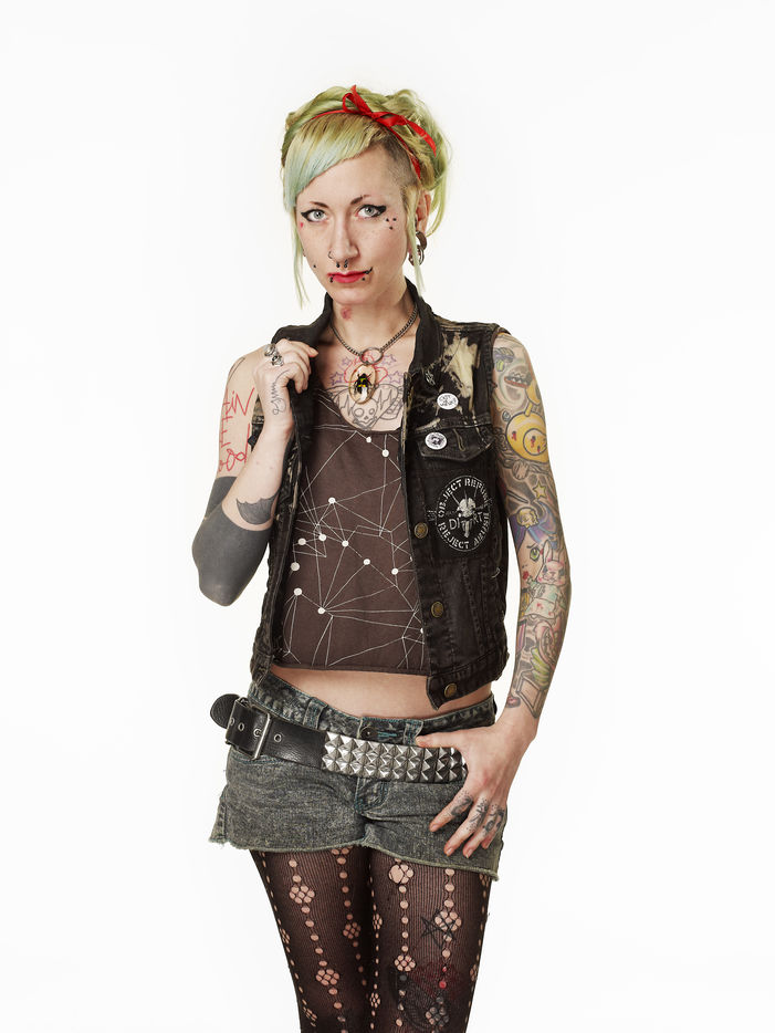 C'est sur cet aspect du mouvement que j'ai décidé de me pencher en réalisant cette série de portraits documentaires. Détachée de son milieux, chaque personne est photographiée dans le but de mettre en avant son univers : épingles à nourrice, clous, coupes et couleur de cheveux décalées, blousons de cuirs, tout ça dans un esprit « Do It Yourself » qui lui permet de revendiquer ses idéaux.