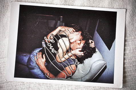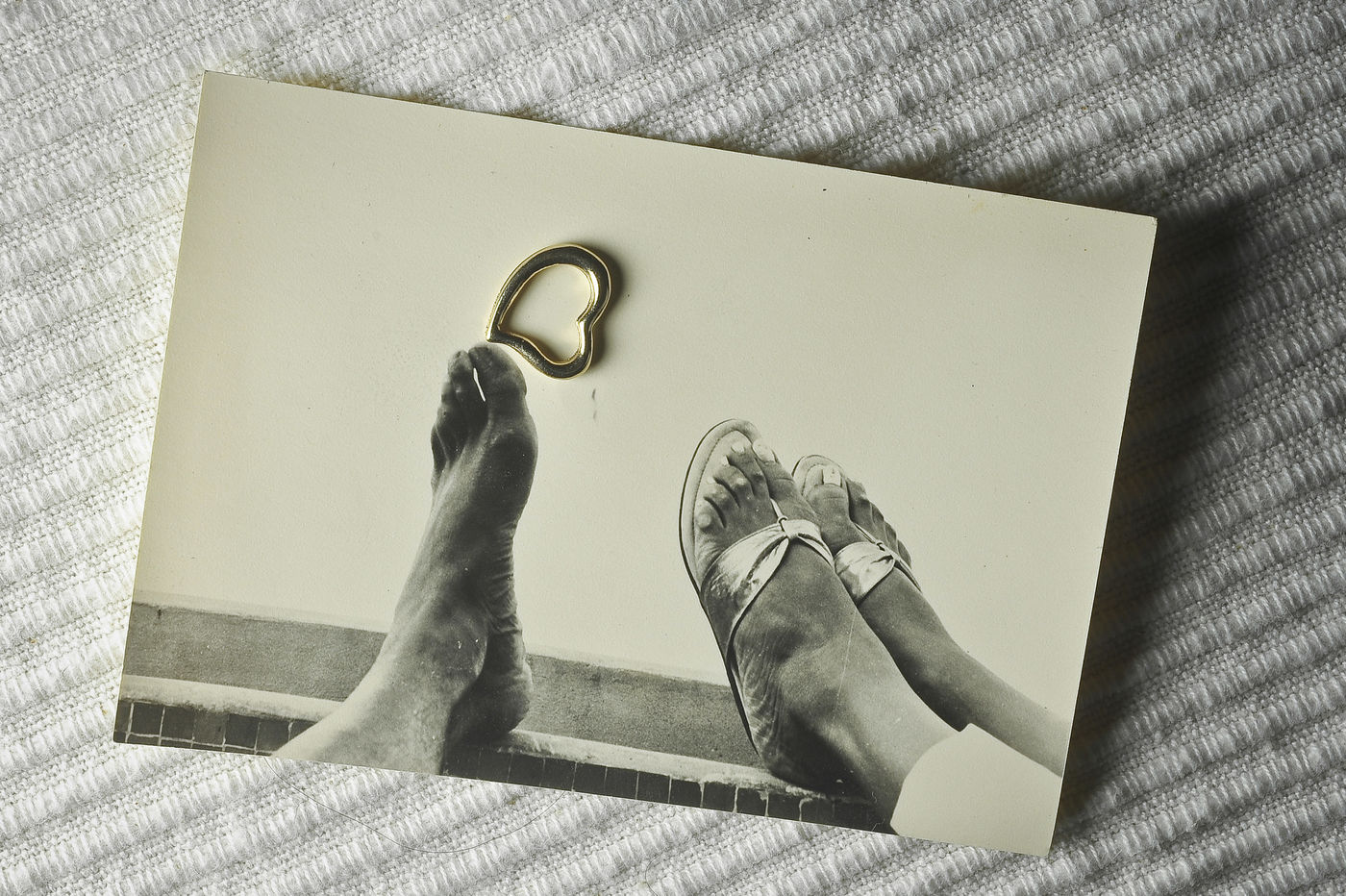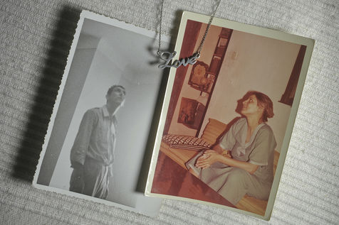 A partir de photos de couples anciennes, découvertes dans les cartons de famille ou chinées aux puces, j'ai été frappée par la diversité de l'expression du sentiment amoureux. J'ai rephotographié ces vieilles photos en y apposant un objet amplificateur du lien amoureux perçu dans l'image. Une façon pour moi de rendre hommage à l'amour qui a existé entre deux personnes, et qui continue à traverser le temps.