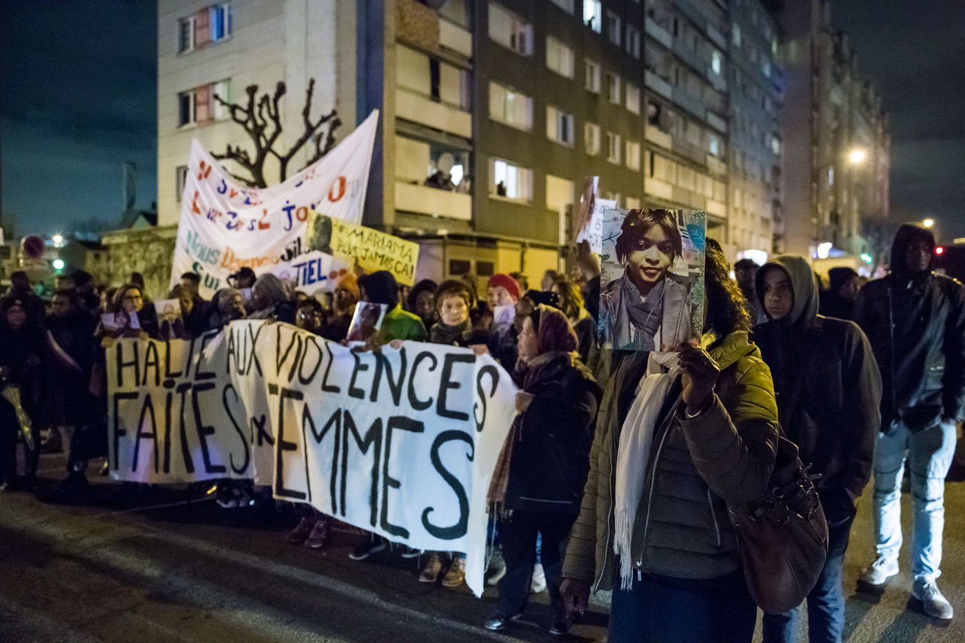 Une marche en mémoire de Mariama, une femme assassinée le 30 décembre 2017, lors de violences domestiques, s'est tenue le 10 janvier 2018, à Montreuil, près de Paris. Plusieurs centaines de personnes y ont pris part.