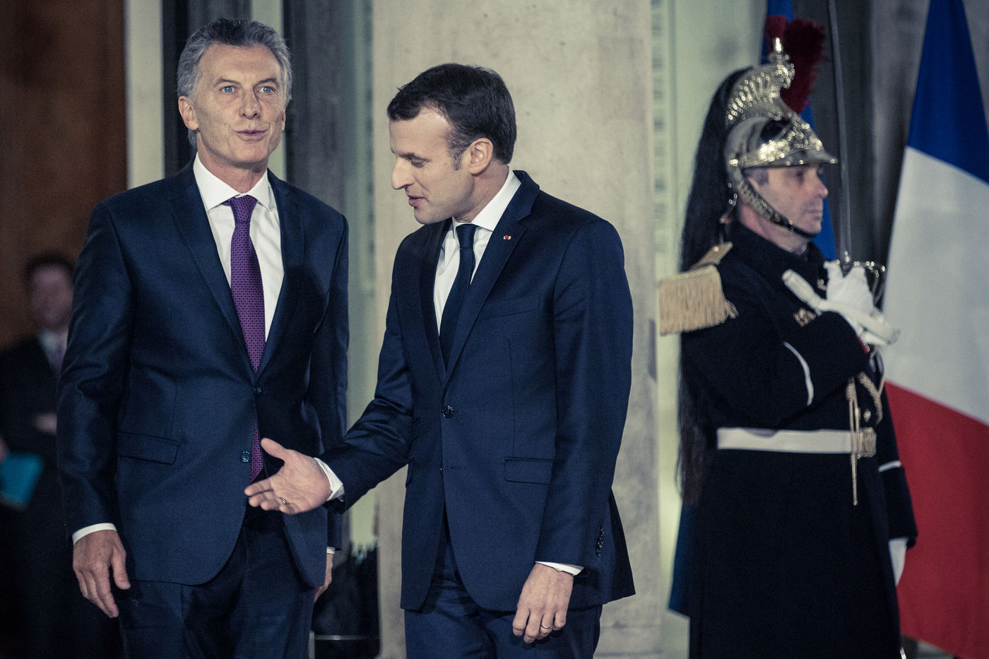 PRESIDENT MACRON WELCOMES PRESIDENT MACRI
