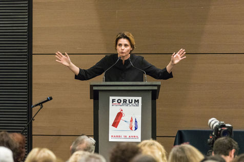 Le philosophe Bernard-Henri Lévy a organisé un "Forum contre Marine Le Pen et le parti de la haine" à la Maison de la Mutualité, le 18 avril 2017 à Paris, pendant les élections présidentielles françaises de 2017.