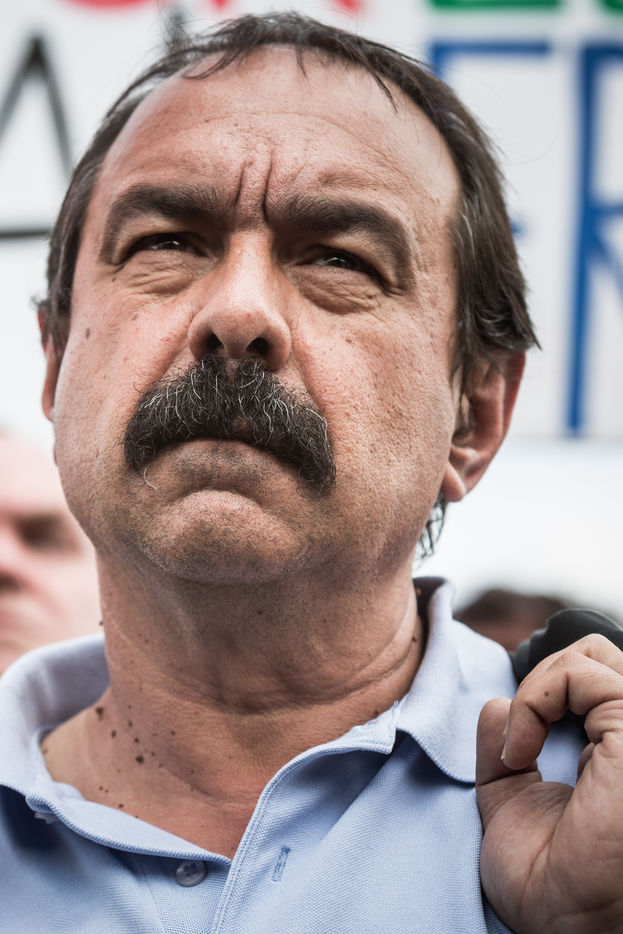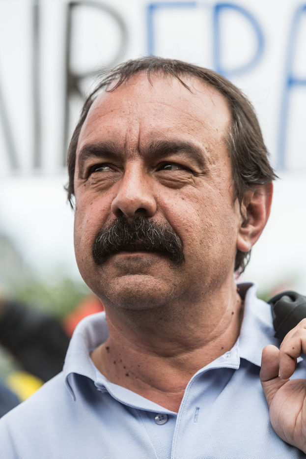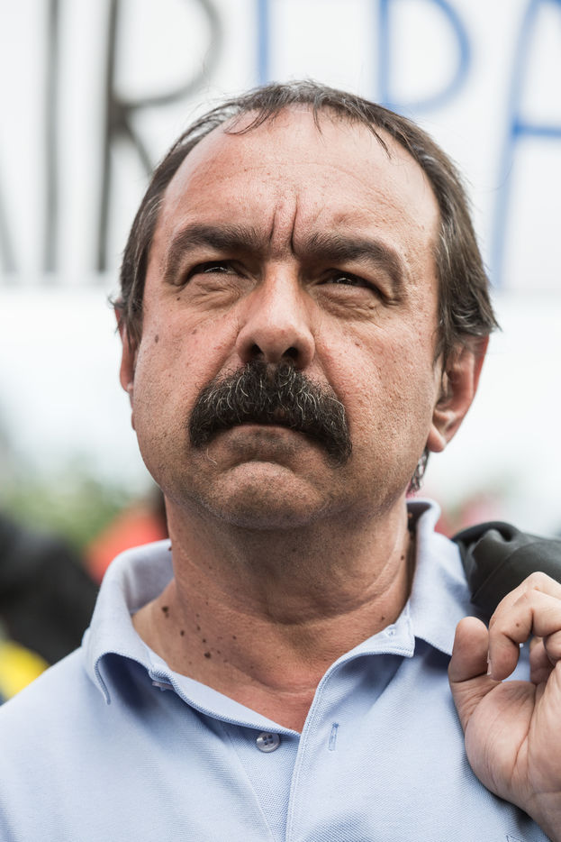 En signe de soutien aux 16 employés d'Air France qui sont jugÉs dans l'affaire dite «de la chemise», le syndicat CGT tient un rassemblement a côté du Tribunal de Grande Instance de Bobigny, près de Paris, France, le 27 Mai 2016.