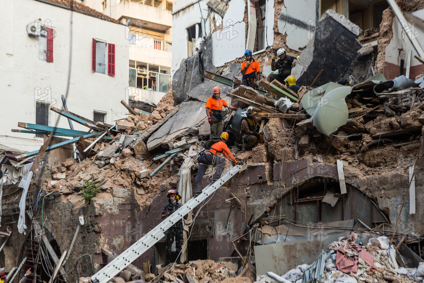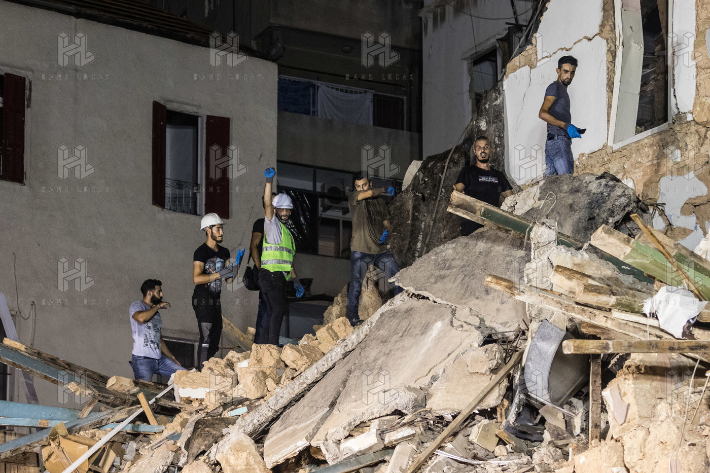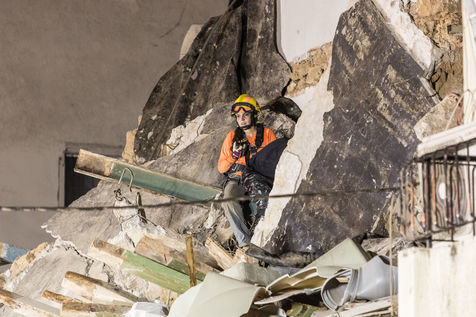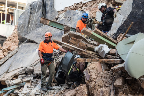 DES SECOURISTES CHILIENS RECHERCHENT UN ÉVENTUEL SURVIVANT DANS LES DÉCOMBRES DE L'EXPLOSION DU 4 AOUT