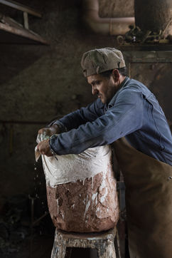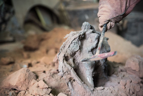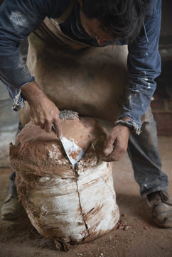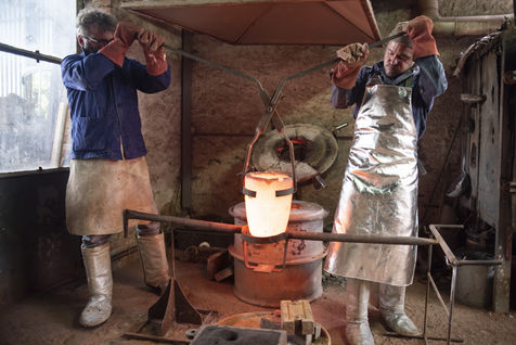 Julien Perrier est sculpteur dans le Maine et Loire. Il a un atelier de fonderie. Certaines de ses sculptures sont en bronze. Voici une série sur la coulée du bronze dans un moule en terre.