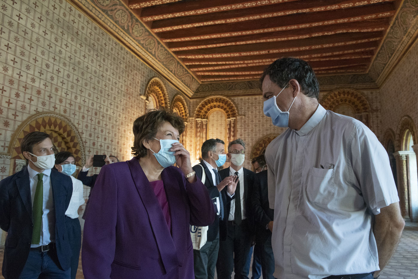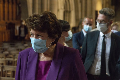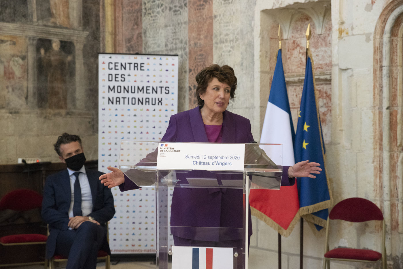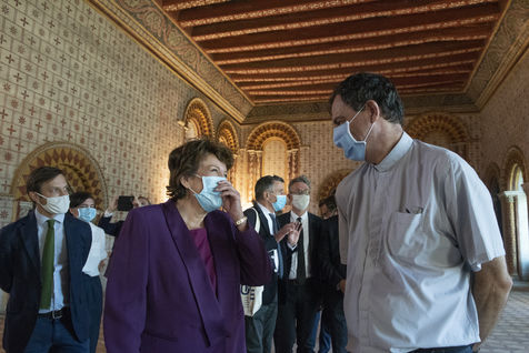 Roselyne Bachelot, Minister of Culture, came to visit Angers Cathedral and Angers Castle accompanied by the mayor, Christophe Bechu.