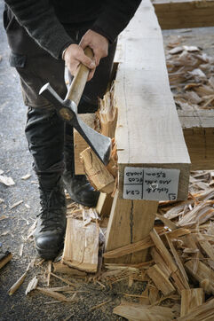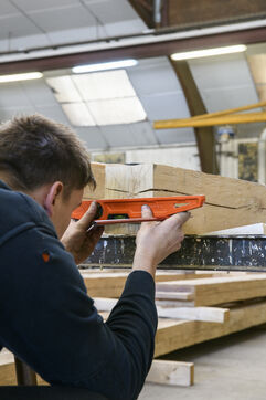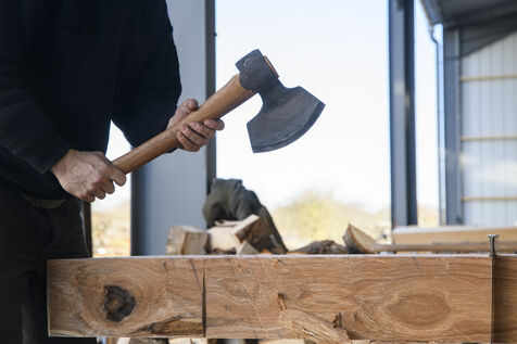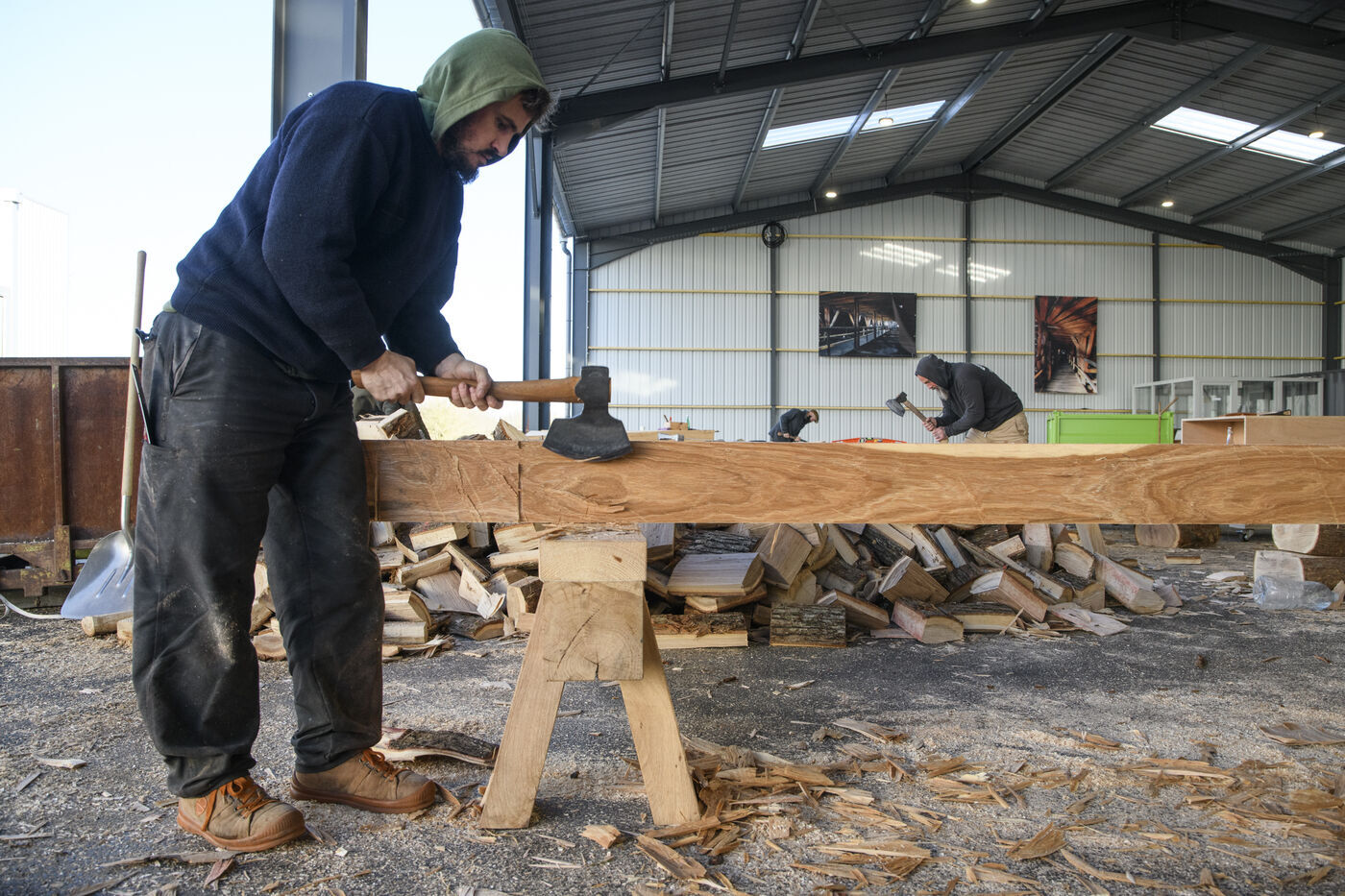 Aux Ateliers Perrault à Saint-Laurent-de-la-Plaine dans le Maine-et-Loire, des équarrisseurs ont fabriqué la nouvelle charpente de Notre Dame de Paris. Travail de plus d'un an entre l'équarrissage et le montage.
