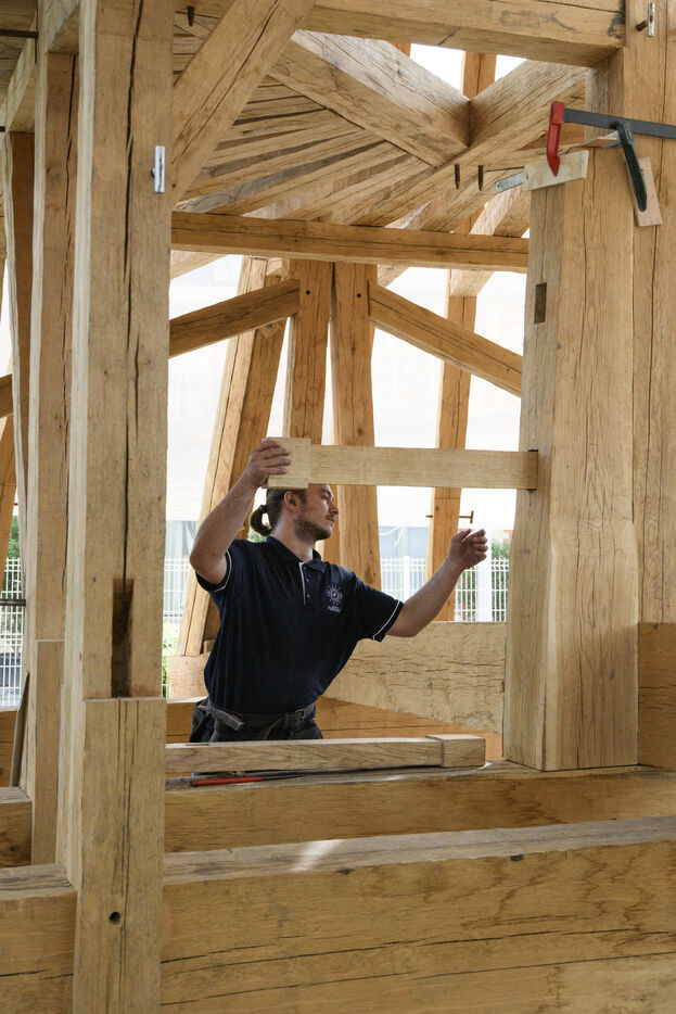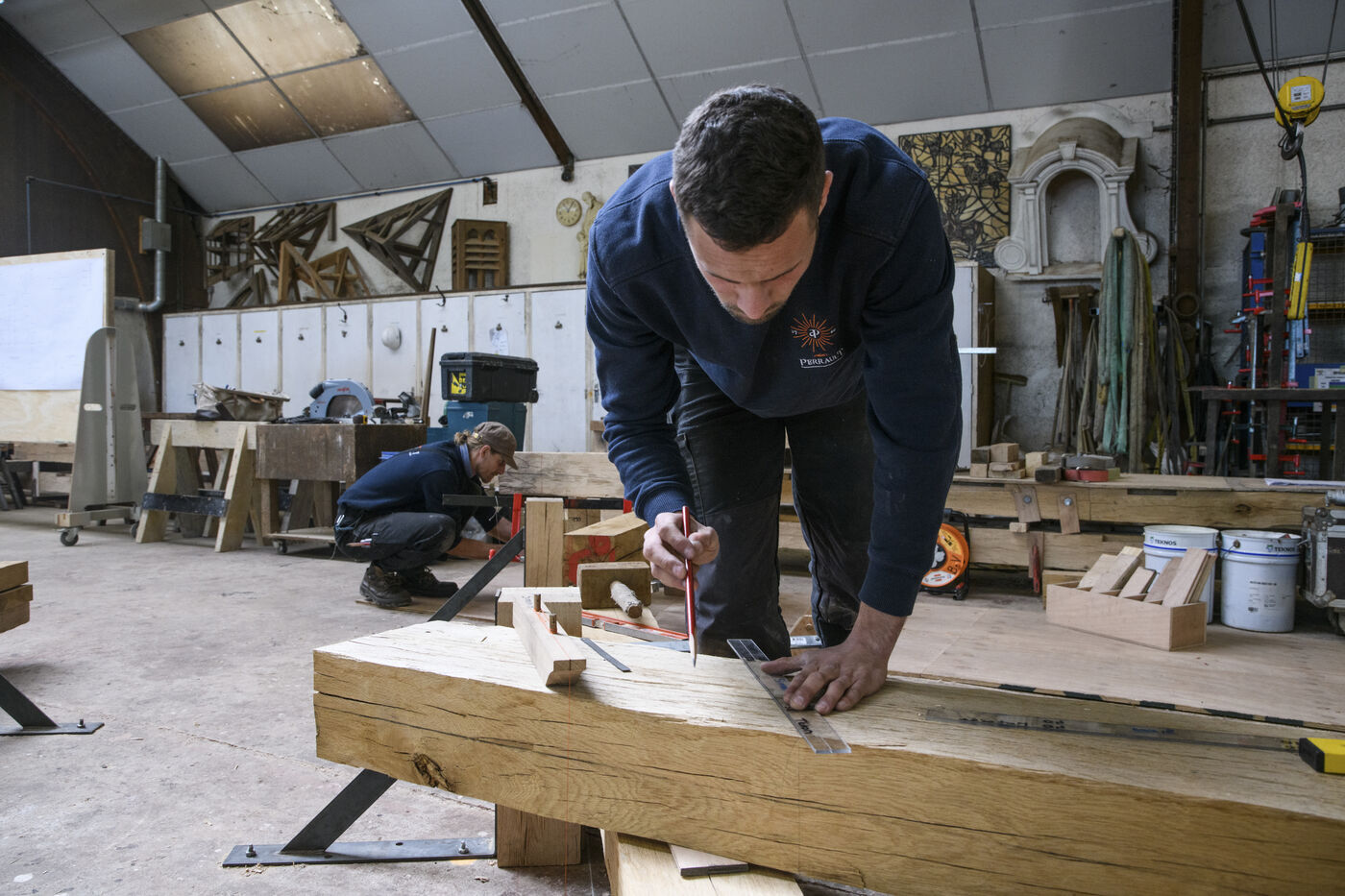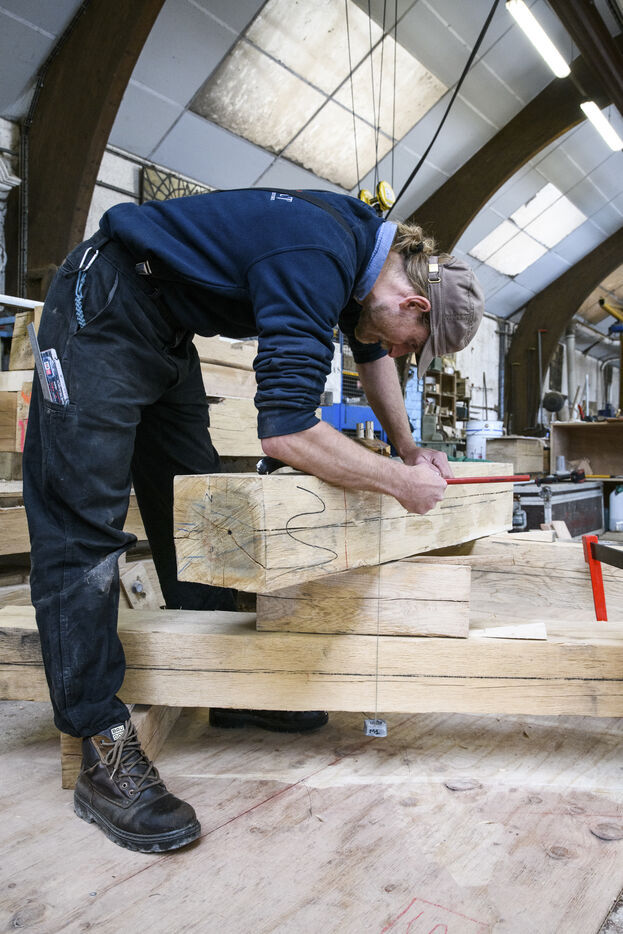 At the Ateliers Perrault in Saint-Laurent-de-la-Plaine in Maine-et-Loire, knackers have manufactured the new framework of Notre Dame de Paris. Work lasting more than a year between the squaring and the assembly.