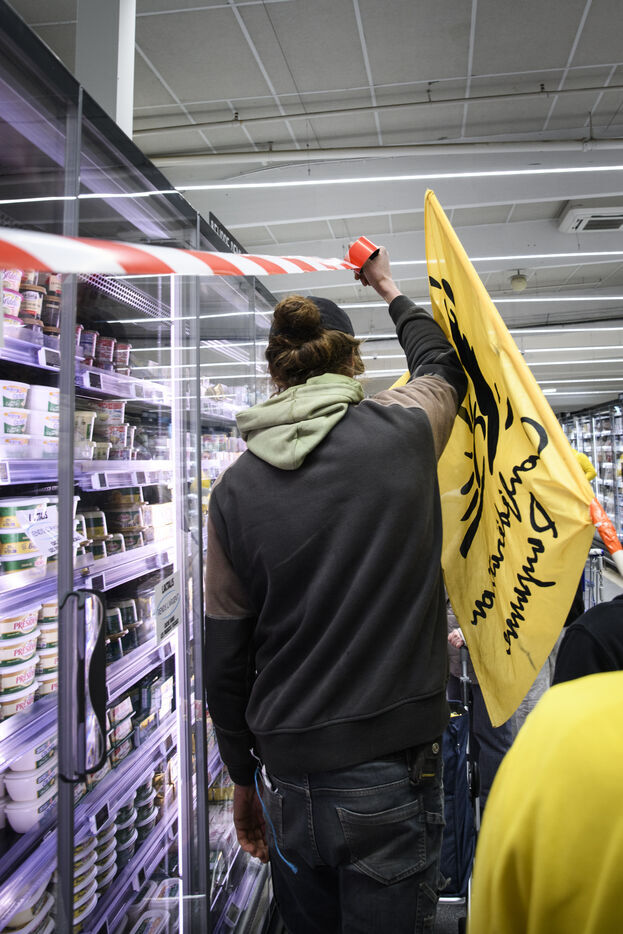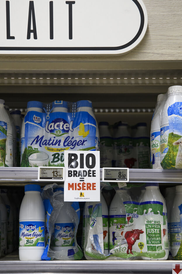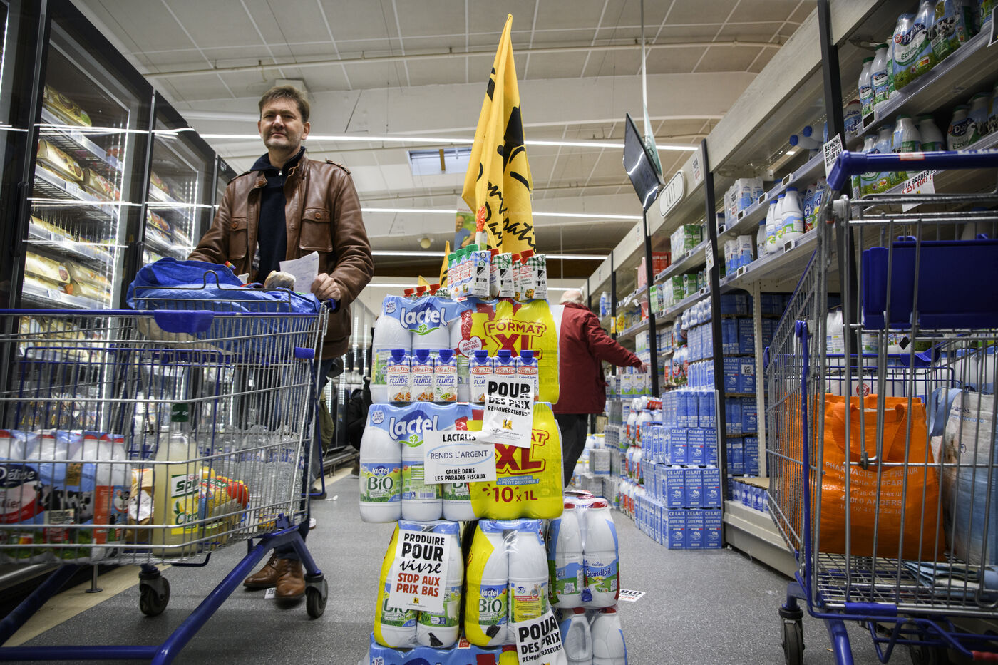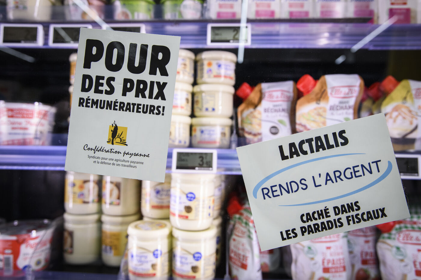 The Confédération Paysanne union went to a supermarket to put up protest stickers. The union opposes free trade agreements between South American countries and the European Union, MERCOSUR. They demand more dignified incomes, they demand peasant agriculture that respects nature.