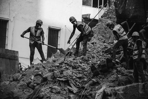 Pendant pres de 3 jours, l'equipe de sauvetage chilienne Topos a deblaye les decombres d'une maison totalement effondree dans le quartier de Mar Mickhael a la recherche d'un survivant. Leur chien, specialiste en detection humaine avait en effet marque a plusieurs reprise l'arret sur cet emplacement. L'equipe de sauveteurs est egalement dote d'un scanner qui repere les eventuels survivants ensevelis sous les decombres en mesurant la chaleur des corps humains et les battements de coeurs. Un mois apres l?explosion du port, 7 personnes sont toujours portees disparues. Liban, Beyrouth, 4 & 5 septembre 2020.