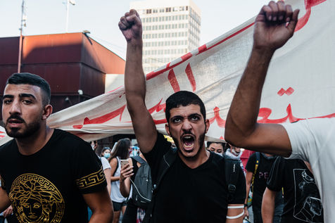 Thousands of Lebanese demonstrated in the streets of Beirut to mark the first anniversary of the anti-corruption protest movement. The march started from Martyrs Square and moved to the Hamra district. At the end of the day, the demonstrators gathered at the port where sculptures have been installed in tribute to the victims of the double explosion of August 4th. Beirut, October 17, 2020.