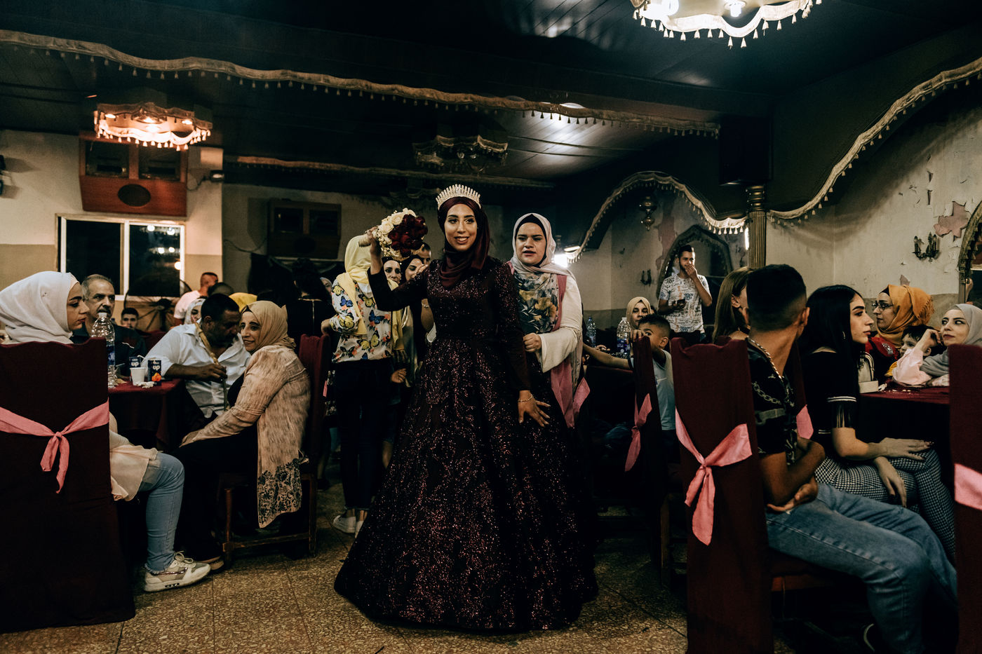 Lebanon, Beirut, Burj Barajneh, 2021-07-03. Despite the economic crisis that plunges the refugee population into ever-increasing poverty, the Palestinian community in the camps finds the strength to joyfully celebrate the important rite of marriage. The space has been rented for the occasion. But due to lack of money, no food or drink will be served during the celebration. According to the World Bank, Lebanon suffers from one of the worst economic crises since 150 years.