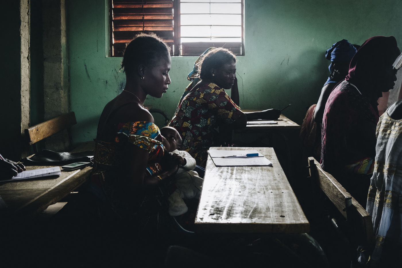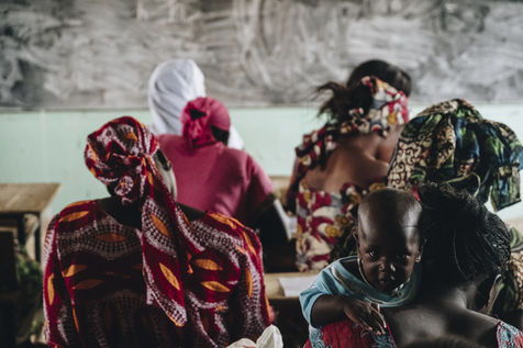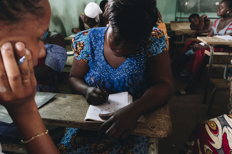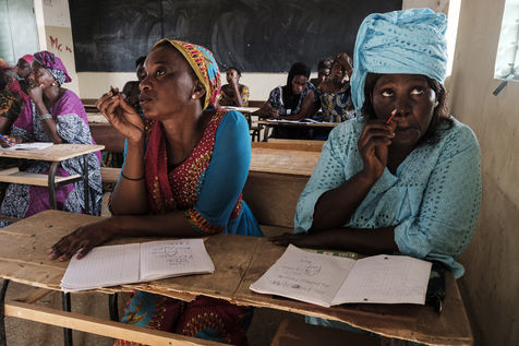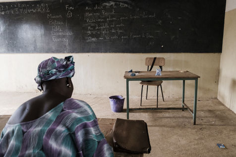 In Senegal, nearly 50% of the population is illiterate. In Diamniadio, in the Saloum region, students from the Arts et Métiers engineering school give classes to women in the village.?Sénégal, juillet 2017.