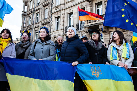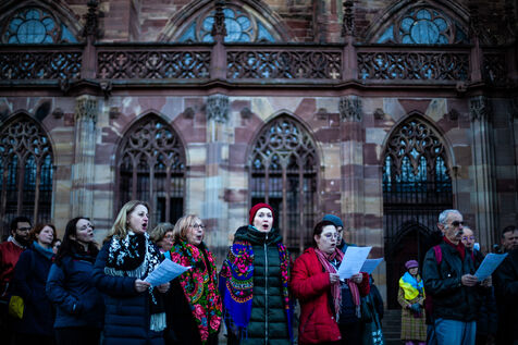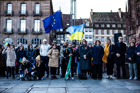 Nearly 400 people, mostly individuals from the Ukrainian diaspora, gathered this Saturday in Strasbourg. The demonstrators, who initially gathered in front of the Russian consulate in Strasbourg, then headed towards Place du Château, where a commemoration ceremony for the victims of the war in Ukraine took place.