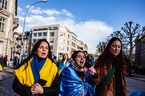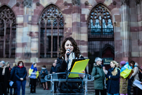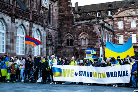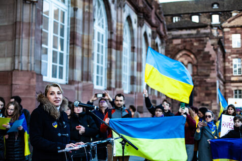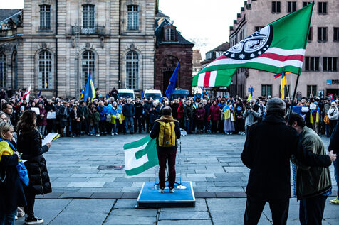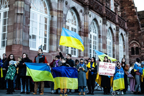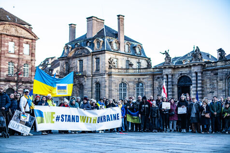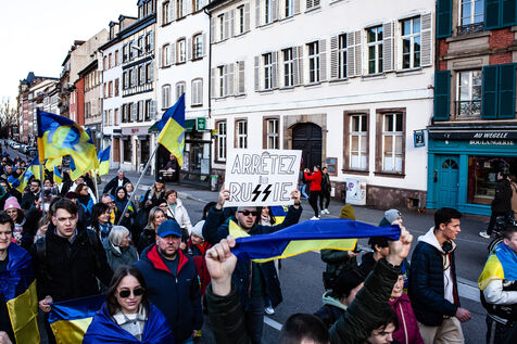 Près de 400 personnes, majoritairement des personnes issues de la diaspora ukrainienne, se sont rassemblées ce samedi à Strasbourg. Les manifestant.es qui se sont d'abord rassemblé.es devant le consulat russe à Strasbourg, se sont dirigé ensuite vers la Place du château, où une cérémonie de commémoration des victimes de la guerre en Ukraine s'est tenue.