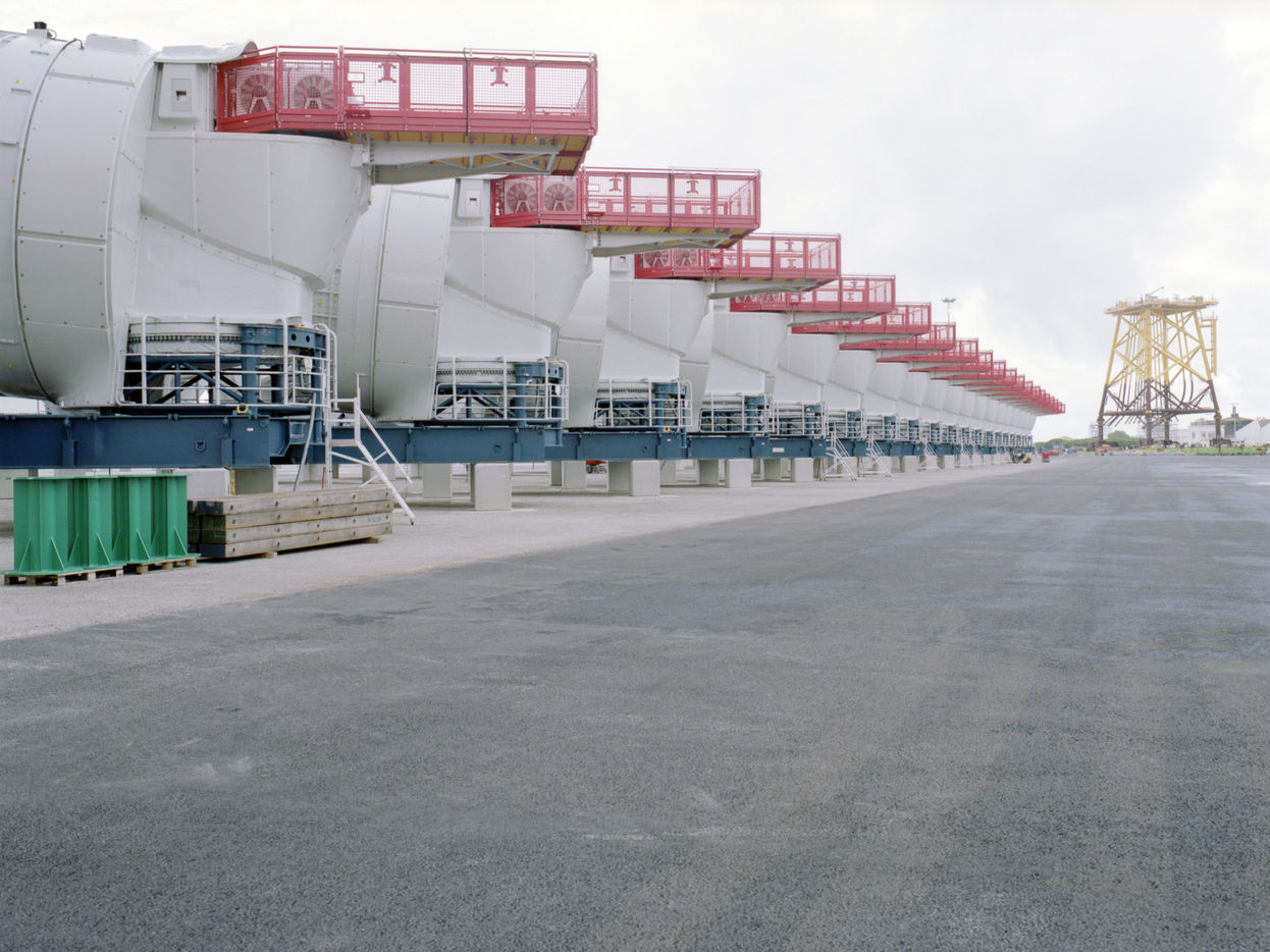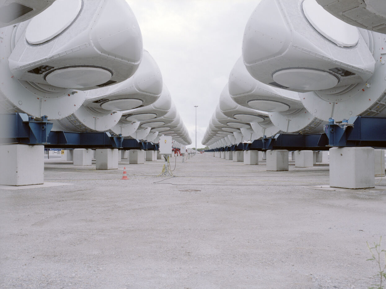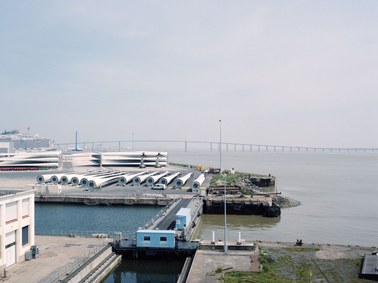 The Saint-Nazaire offshore wind farm is currently under construction in order to bring 80 wind turbines into service by the end of 2022. The various components of the wind turbines are stored in the port until they are transported to the wind farm.
