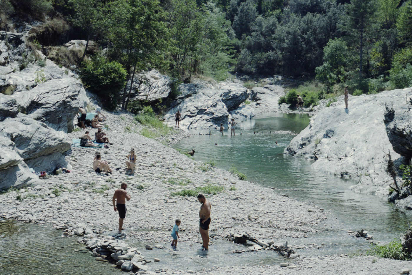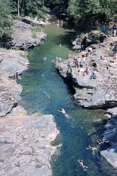 During the July heat wave, bathers relax in the rivers of the Cevennes. These bathing places mainly benefit local tourism.