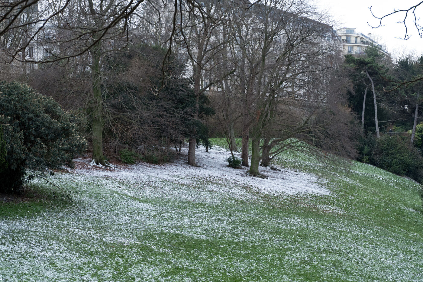 Cold snap in Paris : on the morning of January 9, the Buttes Chaumont were still covered in snow.