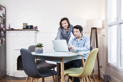 Mise en scène avec des comédiens de l'utilisation de l'espace client digital du compteur Linky d'Enedis, dans un appartement, à Paris (France). - 12 décembre 2016