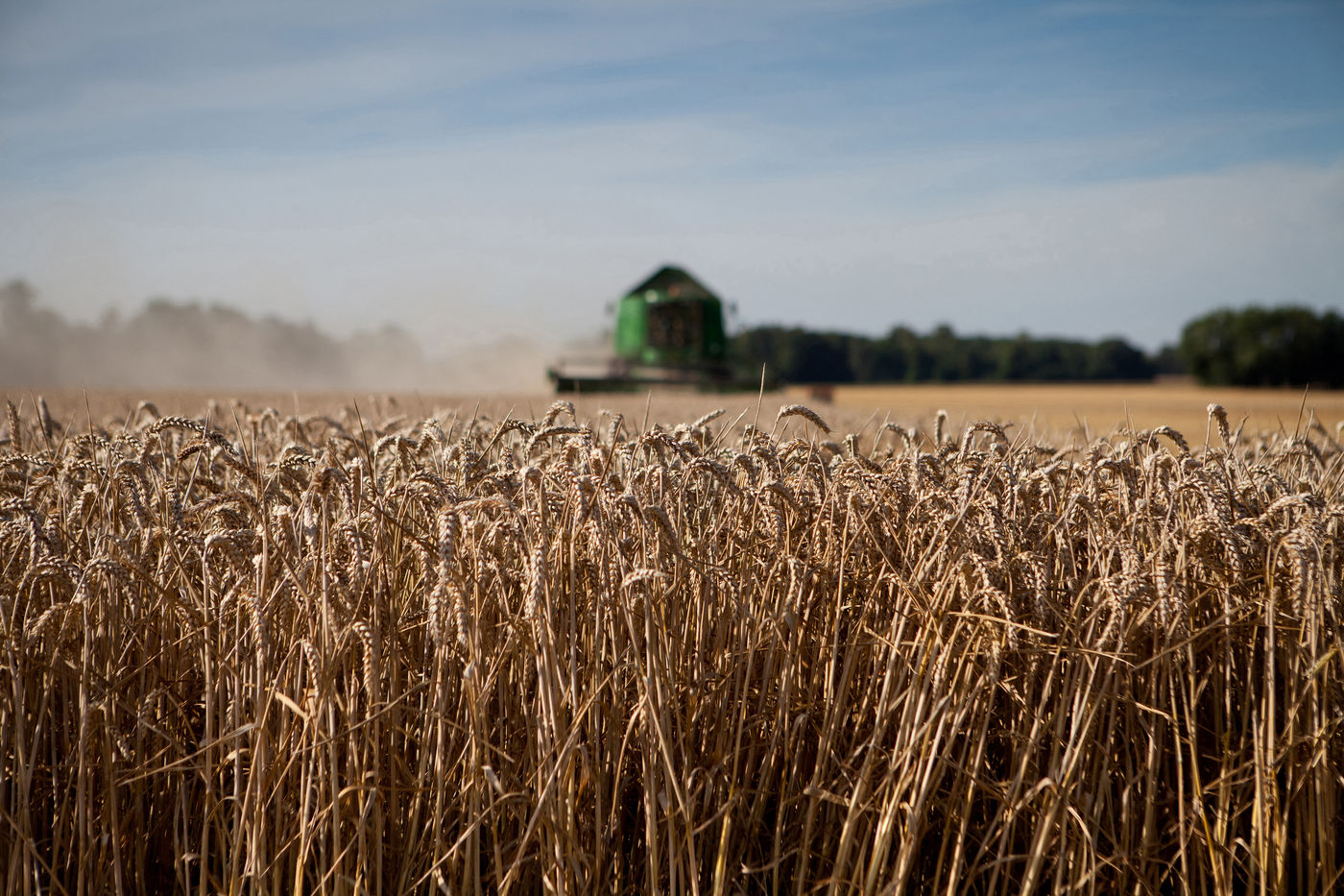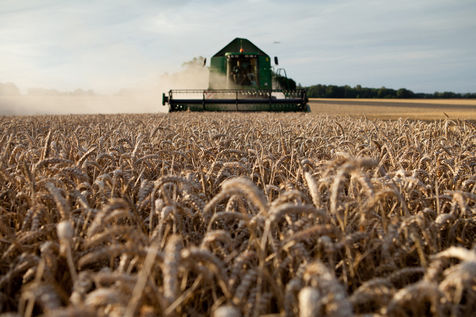 Images d'illustrations de la moisson de céréales dans des techniques agricoles mécanisées d'agriculture conventionnelle.