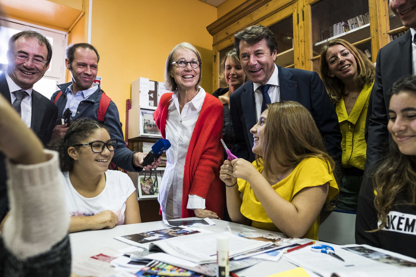Déplacement de Françoise Nyssen, ministre de la Culture accompagnée du Maire de Nice Christian Estrosi, dans l?ancien collège Mistral à Arles. Découverte de trois ateliers pratiques d?initiation à la lecture de l?image.