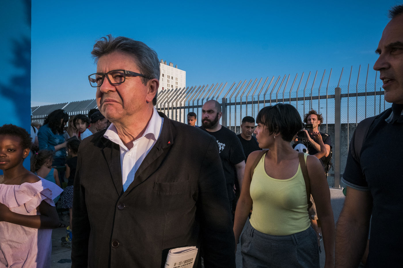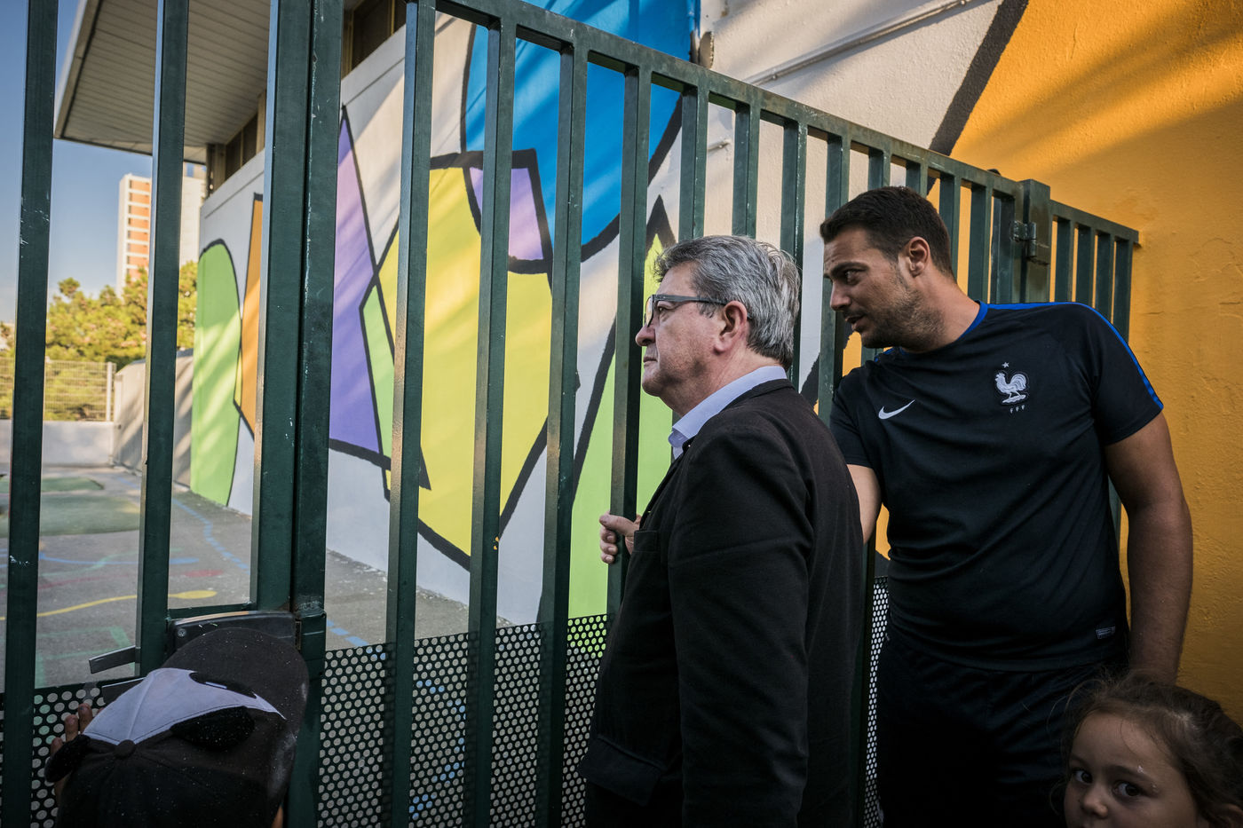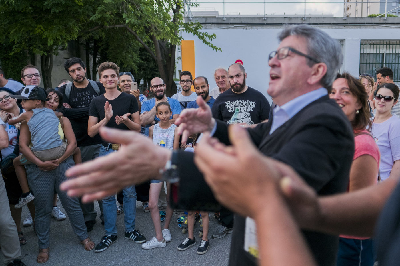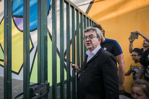 Jean-Luc Mélenchon, deputy France Insoumise, came to see the volunteers of La France Insoumise and parents of high who have participated in a renovation project of the outdoor spaces of the school group of Viste-Bousquet in Marseille, 21 July 2018 .