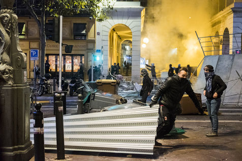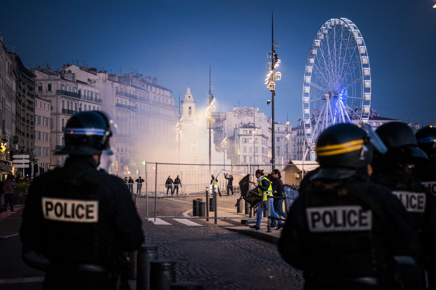 Several barricades have been installed from the old port through the Canebière and one can everywhere in the city center of Marseille.