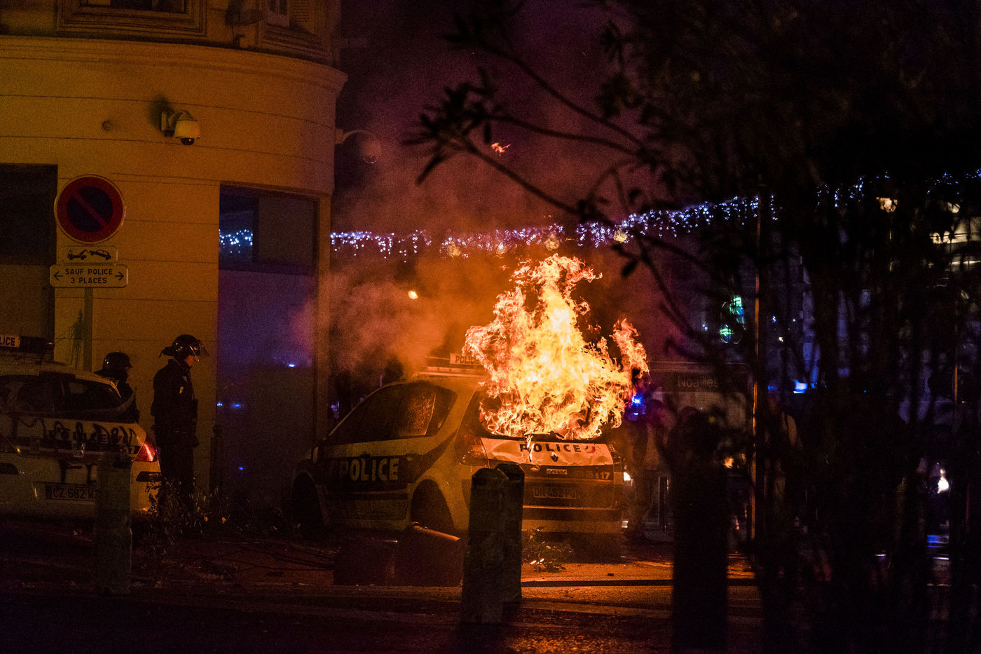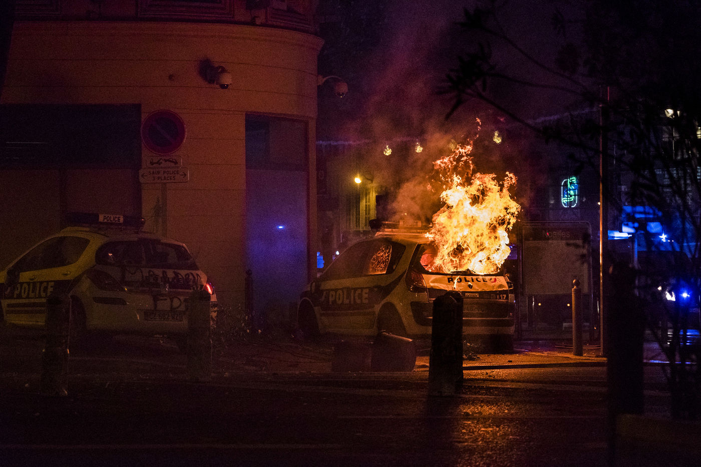 Une voiture de police a était incendié et plusieurs autres véhicules fracturées.