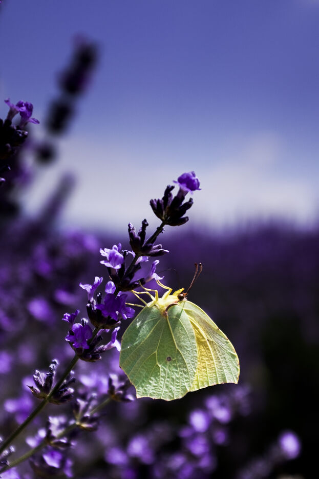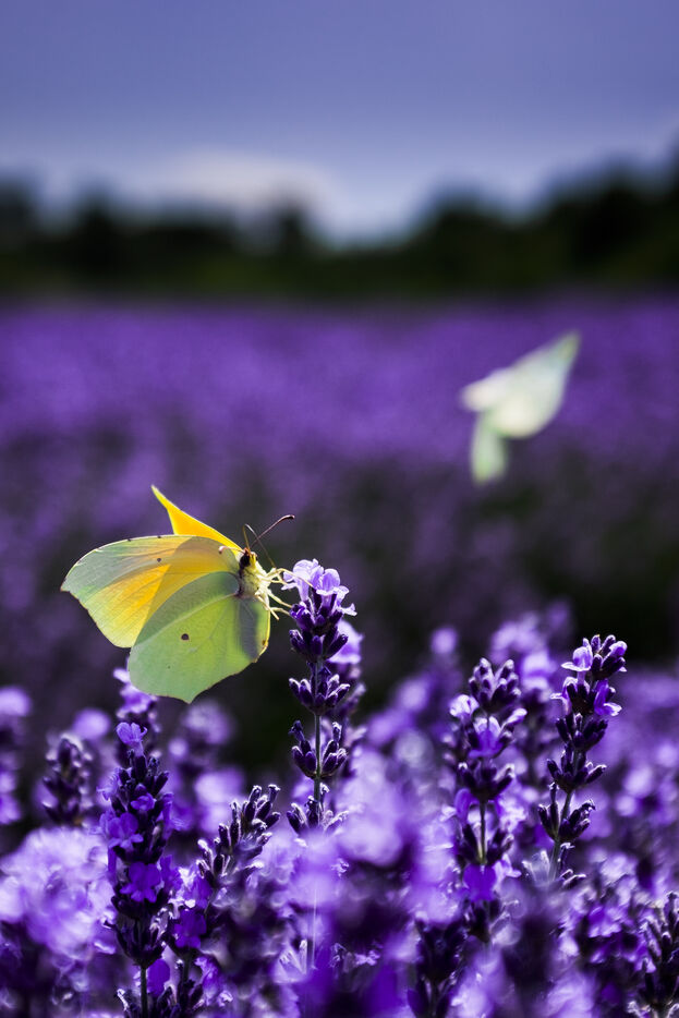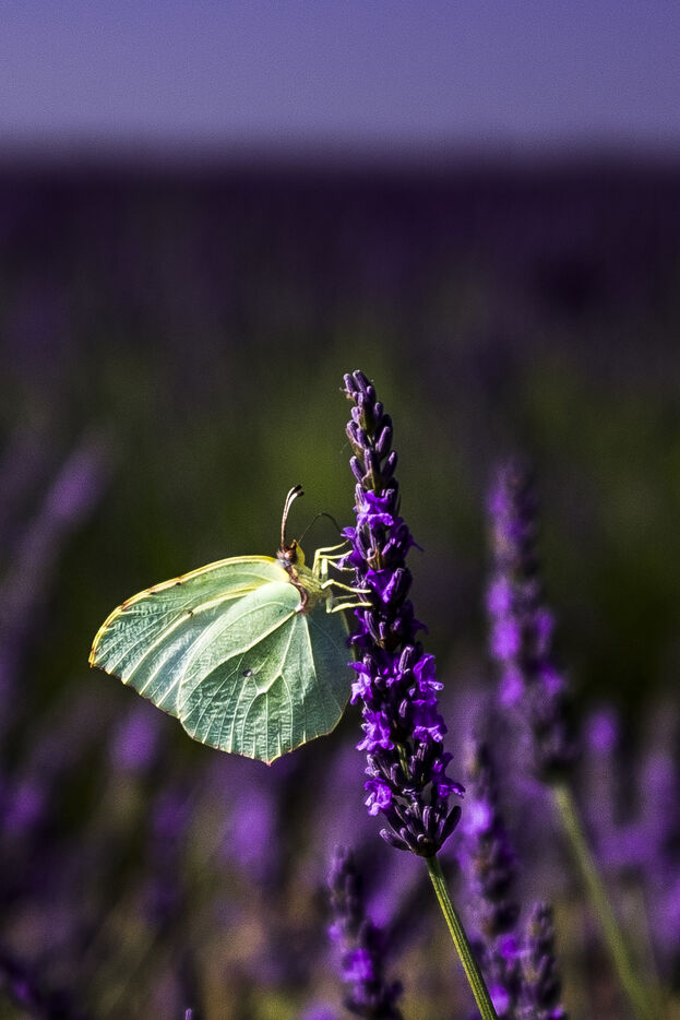 Papillons citron dans les champs de lavande de Valensole