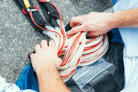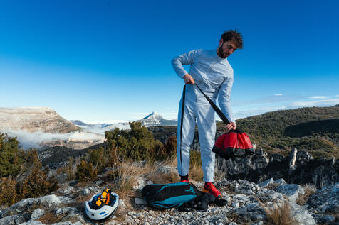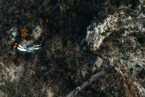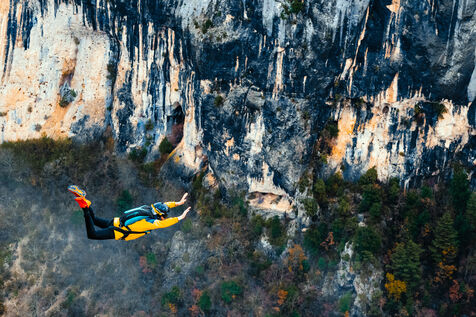Un homme effectuant un base jump depuis une falaise - Moustier Sainte Marie - France - PARTIE 1