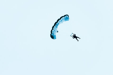 France, Moustier Sainte Marie, 9 décembre 2023, le base jumping est une activité sportive à sensations fortes qui consiste à sauter d'un point haut puis à ouvrir son parachute. Photographie by Louai Barakat / Hans Lucas.