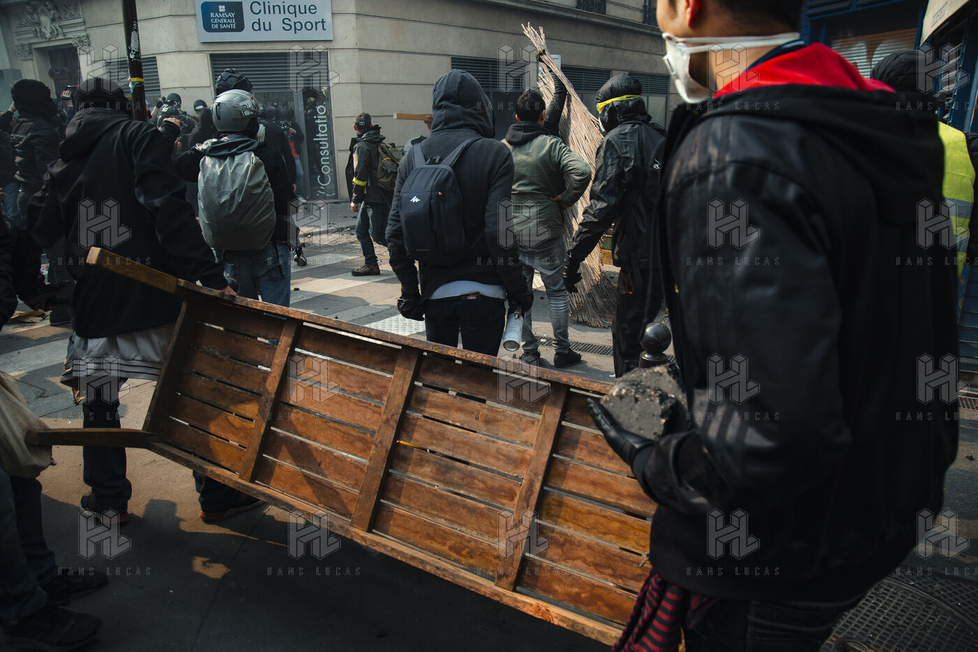 France, Paris, May 01, 2019, Multiple groups get together for a libertarian march ahead of the main demonstrations in Paris earlier today. Last year saw the politically charged march against the governments unpopular pensions reforms become increasingly violent. Photograph by Louai BARAKAT / Hans Lucas.