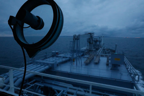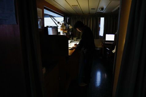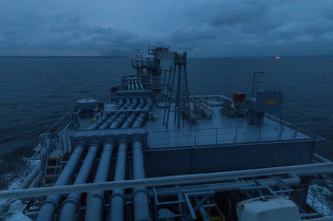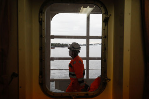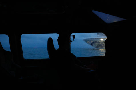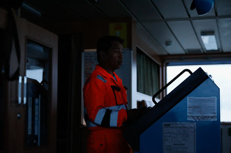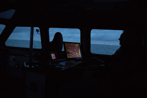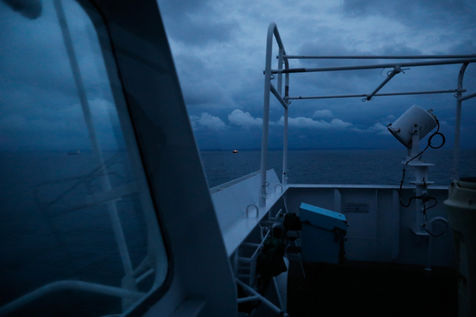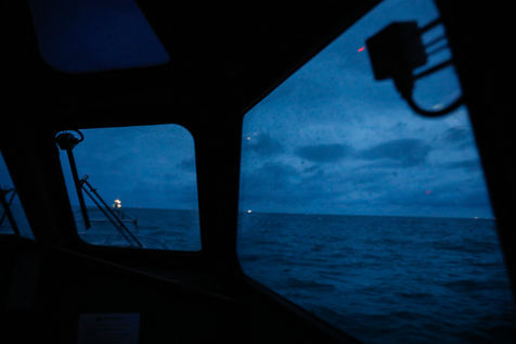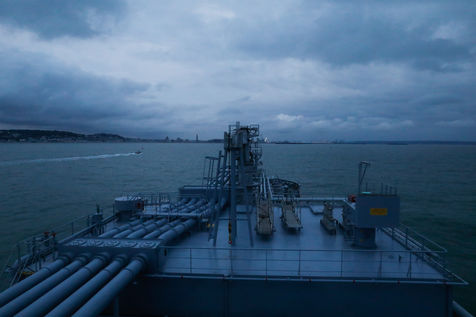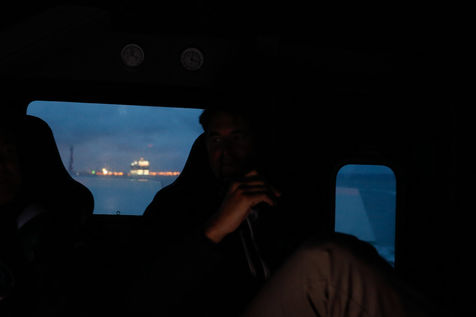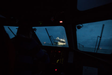 Le Happy Pelican, un chimiquier de 113m de long battant pavillon anglais, s'approche des côtes. Dans la "pilotine", je pars à sa rencontre avec l'un des pilotes de garde cette nuit-là.