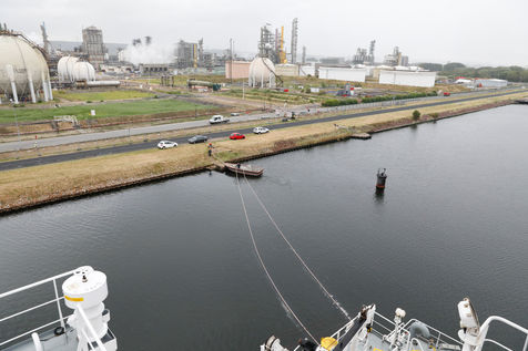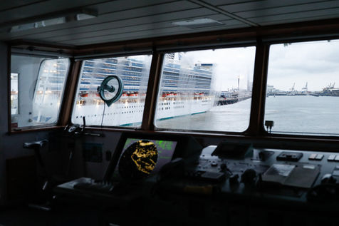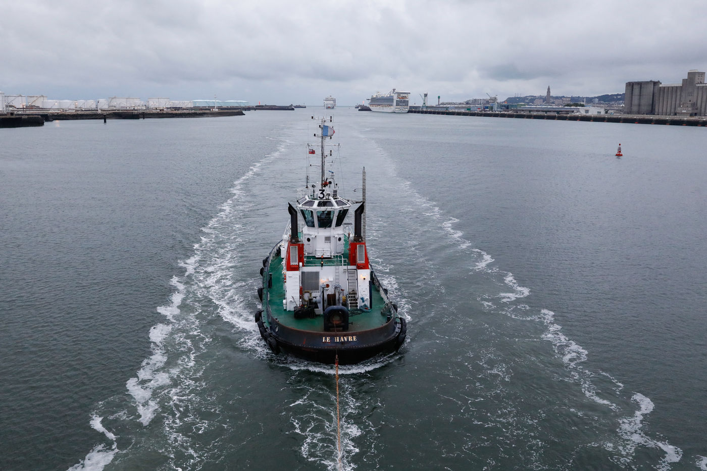 Aller assez vite, un paquebot géant nous suit de près, mais pas trop, le remorqueur y veille.