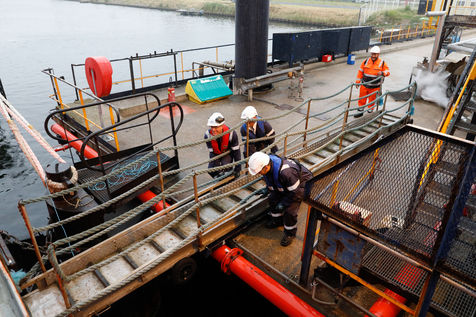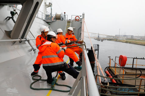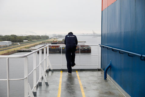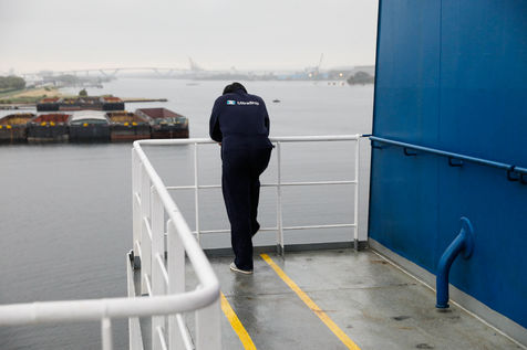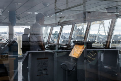 A la différence des longues traversées, où tout n'est que lenteur et monotonie sur mer, le rythme des navires en Europe est très éprouvant pour l'équipage. Des transits d'à peine 24h, entrecoupés d'escales courtes et rythmées par les délicates manoeuvres d'entrées et sorties des ports, et par les opérations de chargements, déchargements de marchandises.