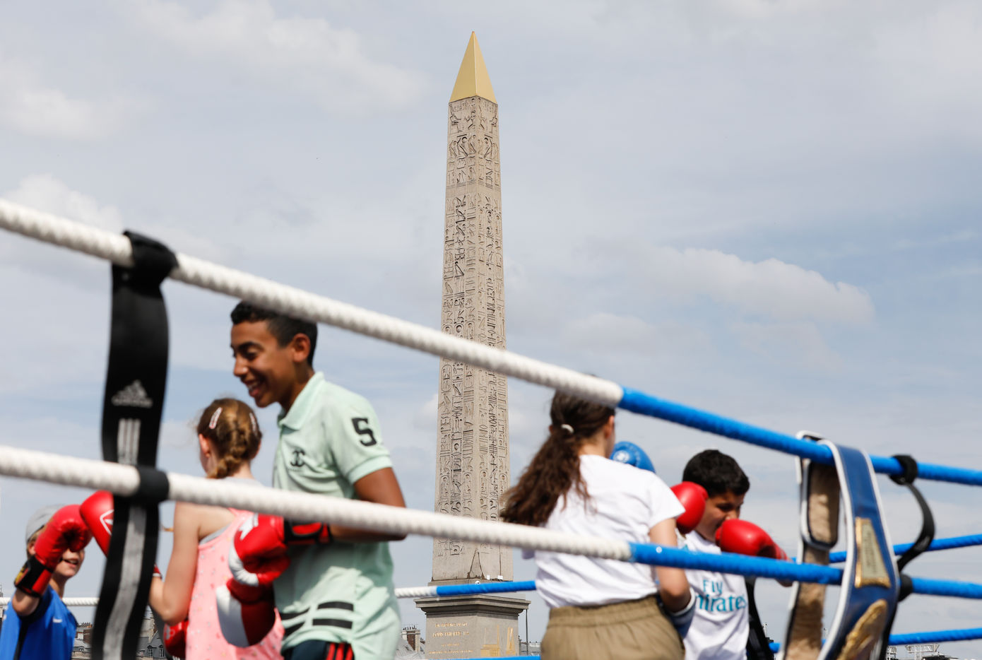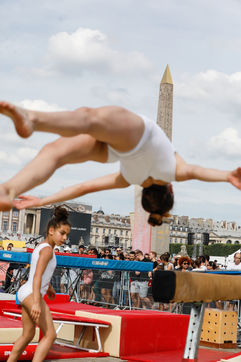 Cinq ans avant les JO d'été 2024, la place de la Concorde de Paris est transformée en un terrain de sport géant à l'occasion de la Journée olympique et de la Fête du sport.