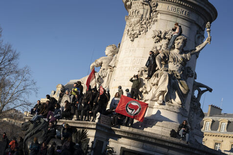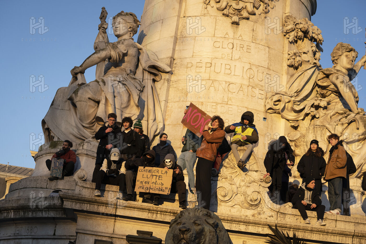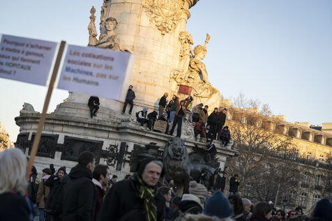 Manifestation intersyndicale contre la réforme des retraites entre la Place de l'Opéra et la Place de la Bastille.