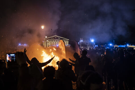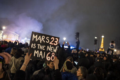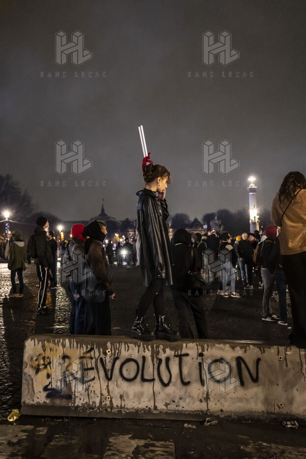 Gathering at Concorde square after the use of 49.3 article by the government of Elisabeth BORNE and Emmanuel MACRON. Mobilization against pension reform.