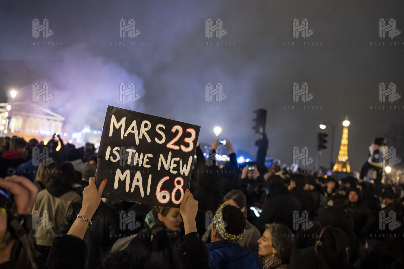 Rassemblement place de la Concorde apres l utilisation de l article 49.3 par le gouvernement d Elisabeth BORNE et d Emmanuel MACRON. Mobilisation contre la réforme des retraites.
