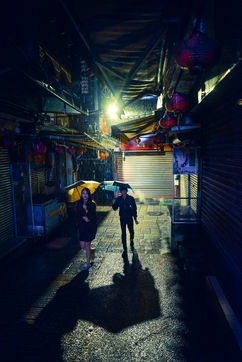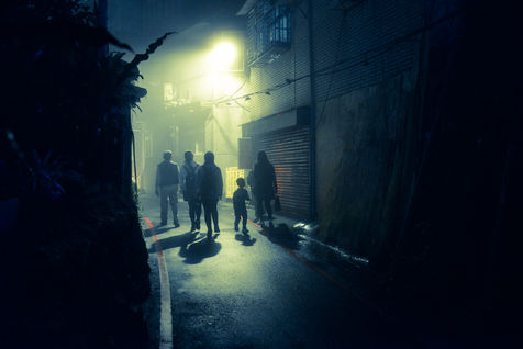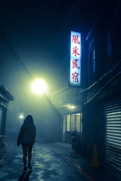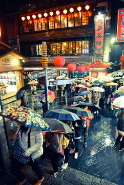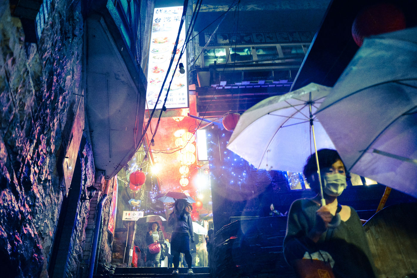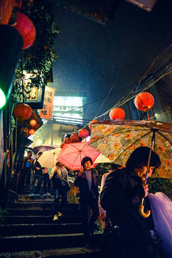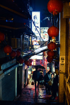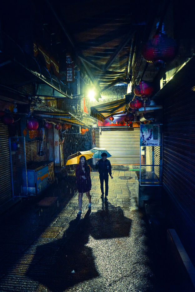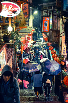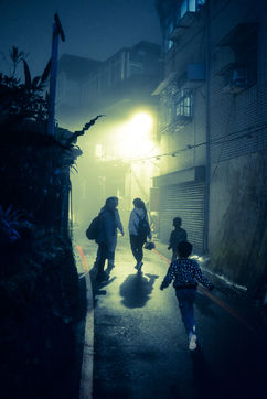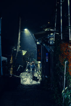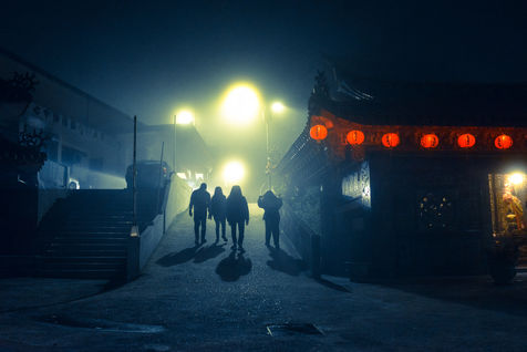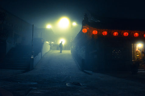 Jiufen, Taiwan. Repère escarpé et fastueux des chercheurs d'or du siècle dernier. La brume tombe sur la ville à flanc de montagne. Entre drame et rêverie, les âmes perdues errent dans ses ruelles, en quête d'une lumière aussi salvatrice que trompeuse.