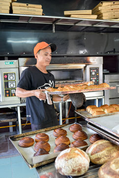 Dans d'autres circonstances, j'aurais pensé que son pain était bon, même très bon, et je serais passée à autre chose. Mais voilà, je suis installée à Taïwan depuis janvier, le pain ne fait pas partie des habitudes alimentaires locales, il n'y a aucune boulangerie dans mon environnement proche, je suis en sevrage depuis presque un semestre, je rêve d'une croûte croustillante qui me griffe le palais et d'effluves de viennoiseries qui activent mon circuit de la récompense même si je ne le mérite peut-être pas. De fait, en poussant la porte de ce café-restaurant-épicerie-traiteur-boulangerie - un repère d'expats et/ou de touristes il faut bien l'avouer, où mon hôtesse se réfugie parfois - à Hoi An, belle petite ville vietnamienne où je me suis exilée temporairement, je suis incapable de rester insensible au charme craquant de ces boules de pain délicatement posées dans des paniers nominatifs sur une table entre fromages et pâtisseries. Puis le voilà qui descend du 1er pour déposer une autre de ses merveilles. Il fait une pause en chemin pour fièrement présenter sa dernière création à des clients du jour. De loin, je le perçois possédé, passionné. Lui ? C'est Andres Preve. Un jeune Mexicain de 27 ans qui fait donc du (très bon) pain dans une boulangerie vietnamienne. Cela ne s'invente pas. Alors, un beau matin, je l'ai suivi dans son antre pour le voir faire et en savoir plus sur ce qui l'avait mené là.