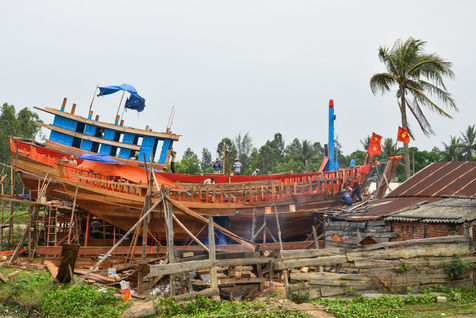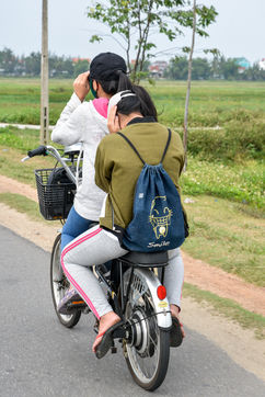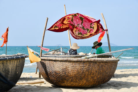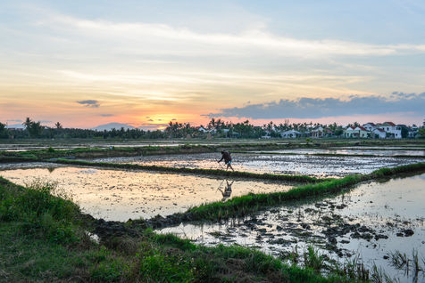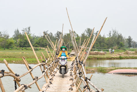 Of course, I crossed this aesthetic magnet several times during these two weeks but I quickly forgot about it. My attention has shifted, by bike, on foot, by scooter, swimming... My eyes turned to the outside, to the outskirts of the city: to its countryside where people marry on the ground and where we collect straw; to its unique Dia Duy cemetery with its above-ground tombs and invigorating colours; to its incredible and crackling bamboo bridge 320 metres long ; to its meticulous craftsmen who create dreams, flying carpets and other fishing boats; to its roads of madness where life passes in cinemascope; to its great neighbour Da Nang of concrete, dragon, impulsions and explosions; to its indiscreet and constructive twilight; to its beach at Cua Dai - threatened because it is undergoing real estate erosion - at 5:55 am, where early risers come to admire the sunrise on the South China Sea, where friendships are sealed, where people practice life at their own pace, where one prepares his next maritime escape; and again to its waterlogged and freshly seeded paddies for the second rice harvest; to its An Bang beach where you can swim, relax, and nibble with your family before the sky, generous, aesthetic and powerful, plays its last symphony for us!