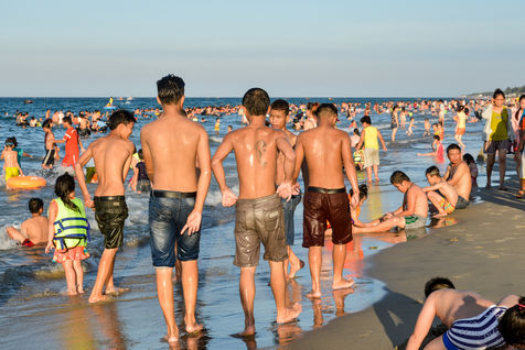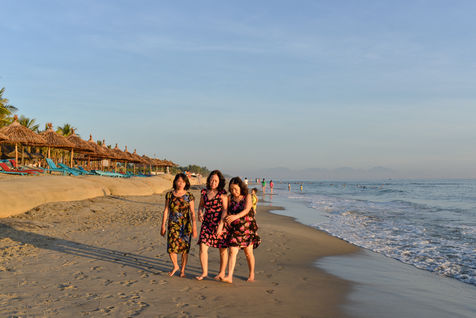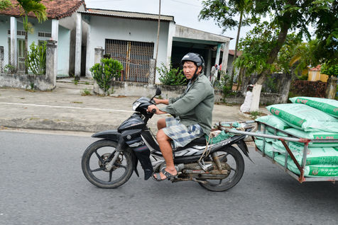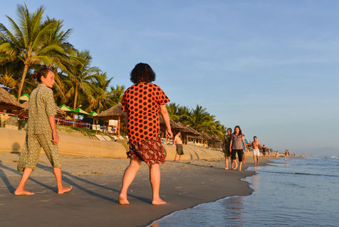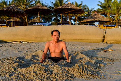 J'ai bien sûr traversé cet aimant esthétique à plusieurs reprises au cours de ces deux semaines mais je l'ai rapidement oublié. Mon attention s'est translatée, à vélo, à pieds, en scooter, à la nage... Mon regard s'est tourné vers l'extérieur, vers la périphérie de la cité : vers ses campagnes où l'on se marie à même la terre et collectionne la paille ; vers son singulier cimetière Dia Duy aux tombes hors sol et aux couleurs vivifiantes ; vers son incroyable et craquant pont de bambou long de 320 mètres ; vers ses artisans minutieux créateurs de rêves, de tapis volants et autres bateaux de pêche ; vers ses routes de folie où défile la vie en cinémascope ; vers sa grande voisine Da Nang de béton, de dragon, d'impulsions et d'explosions ; vers ses crépuscules indiscrets et constructifs ; vers sa plage de Cua Dai - menacée car en voie d'érosion immobilière -, à 5h55, où les matinaux viennent admirer le lever du soleil sur la Mer de Chine méridionale, où les amitiés se scellent, où l'on s'exerce à la vie à son rythme, où l'on prépare sa prochaine évasion maritime ; et encore vers ses rizières gorgées d'eau et fraîchement ensemencées pour la deuxième récolte de riz ; vers sa plage d'An Bang où l'on se baigne en masse, se prélasse, et grignote en famille avant que le ciel, généreux, esthète et puissant, ne nous joue sa dernière symphonie !