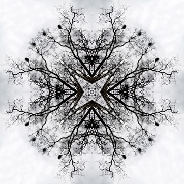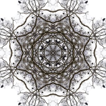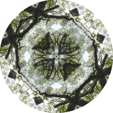 Avec ces Mandalarbres, je me suis laissée (em)porter par mon attraction pour les arbres (tous les arbres), mon amour des mathématiques (de la géométrie, des symétries), ma propension à réorganiser la vie pour faire émerger d'autres dimensions (consciences et inconscientes, réelles et imaginaires, visibles et invisibles), et mes tentatives répétées d'incarner la partie et le tout dans une même représentation dans l'espoir de montrer que tout est interconnecté (car nous - quel que soit ce nous - n'existons pas sans les autres - quels que soient ces autres, par delà les frontières géographiques et temporelles). A mes yeux, il y a de l'infiniment grand et de l'infiniment petit dans ces Mandalarbres.