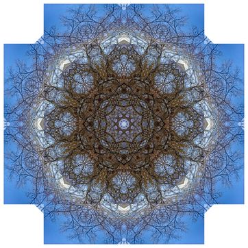 With these Mandalarbres, I let myself be carried away by my attraction for trees (all trees), my love of mathematics (geometry, symetries), my willingness to reorganize life to bring out other dimensions (consciences and unconscious, real and imaginary, visible and invisible), and my repeated attempts to embody the part and the whole in the same representation with the hope of showing that everything is interconnected (because we - whatever we are - do not exist without the others - whatever these others are, across geographical and temporal boundaries). To me, there is infinitely large and infinitely small in these Mandalarbres...