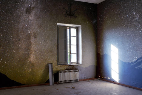 Their walls then subtly become blank pages, medium for my attempts to escape and reconnect with a grandiose nature freshly experienced and just waiting to come to the surface. Rooms like so many memory boxes, inner portals, where outside and inside merge, where present and past unite, where antipodes cross, where finite and infinity are reversed, where borders fade away. A journey through the worlds where everything is put into perspective, first of all, the reality of what we see and the meaning of our peregrinations...